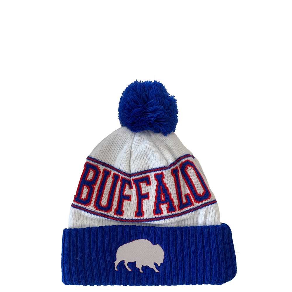 Buffalo Pom Knit Winter Hat - Embroidered Buffalo - YOUTH