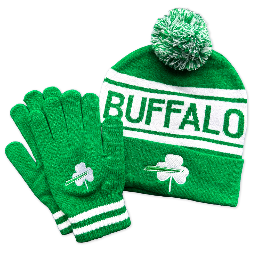 Buffalo Irish Pom Knit Hat - Embroidered Clover