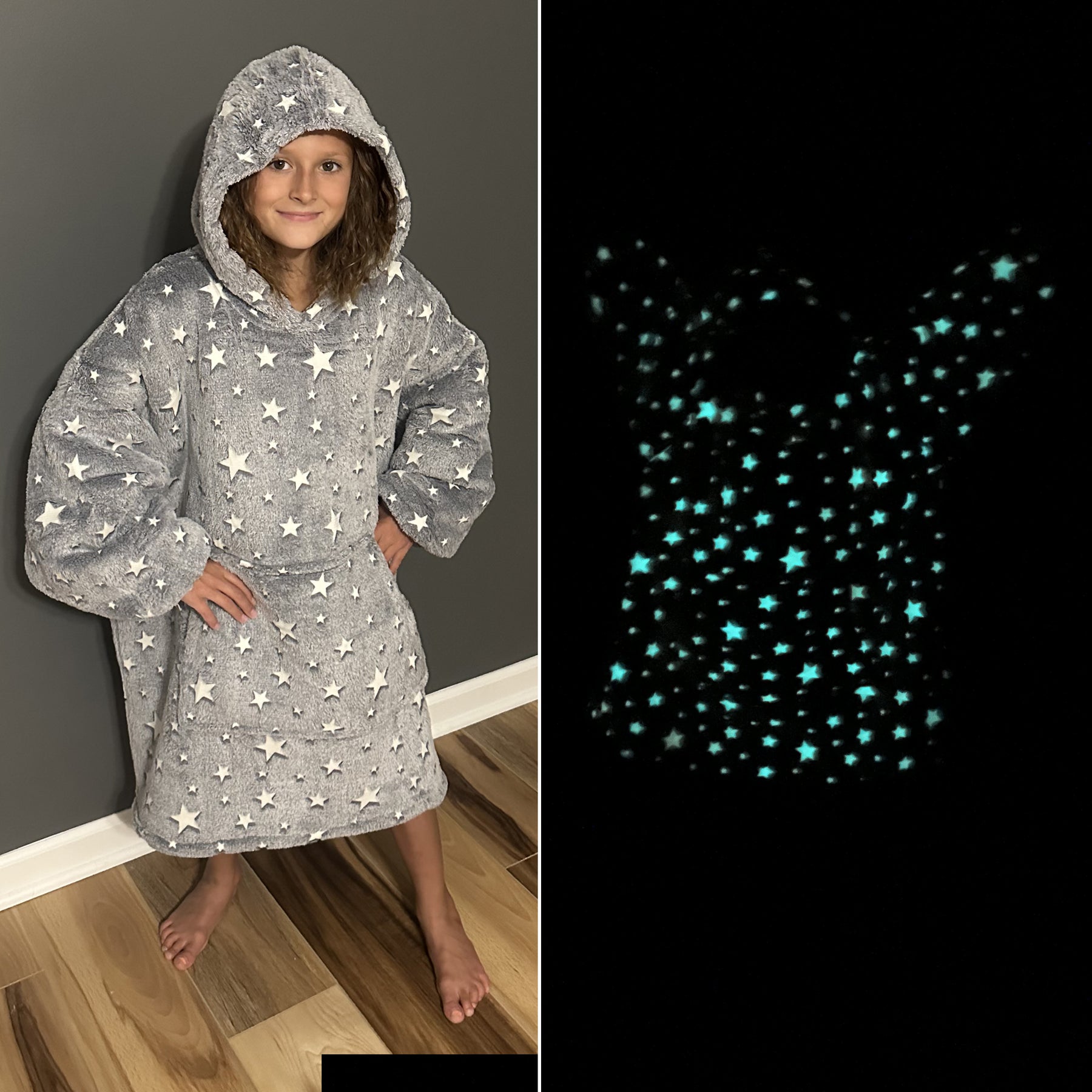Sherpa lining, kangaroo pouch, ribbed cuffs, and glow in the dark embroidery. This Oversized Sherpa Hoodie is for YOUTH.